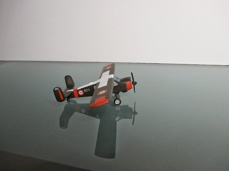 Some time later, wanting to present it, I realized that there was a significant gap between the nose and the rest of the fuselage that I recorked with putty, but I did not make the join of paint considering the characteristic color of the model and having none decal of replacement in case of "overflow"...